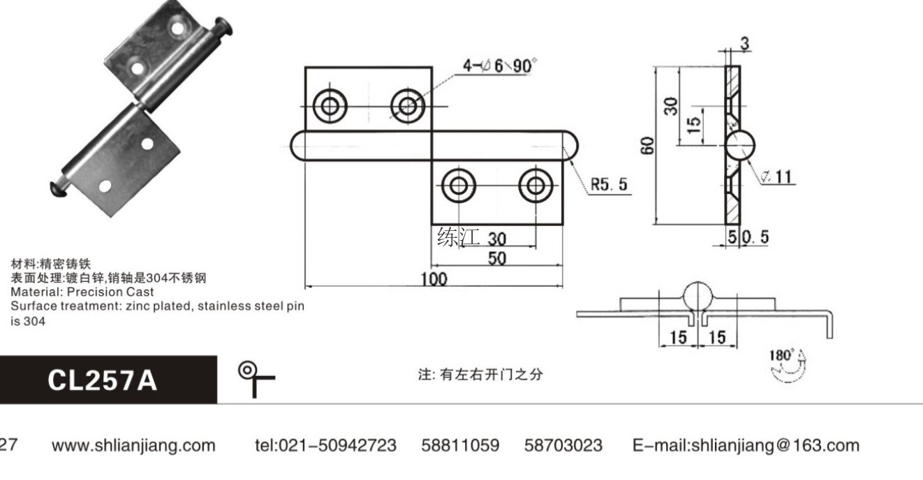 電柜鉸鏈CL257A是上海練江電器制造有限公司主營(yíng)產(chǎn)品之一,公司集科研,開發(fā),生產(chǎn),銷售于一體,具有完備的各類生產(chǎn)加工設(shè)備,專注生產(chǎn)高低壓開關(guān)柜附件,產(chǎn)品已通過(guò)ISO質(zhì)量管理體系認(rèn)證.了解詳情請(qǐng)聯(lián)系021-58811059.