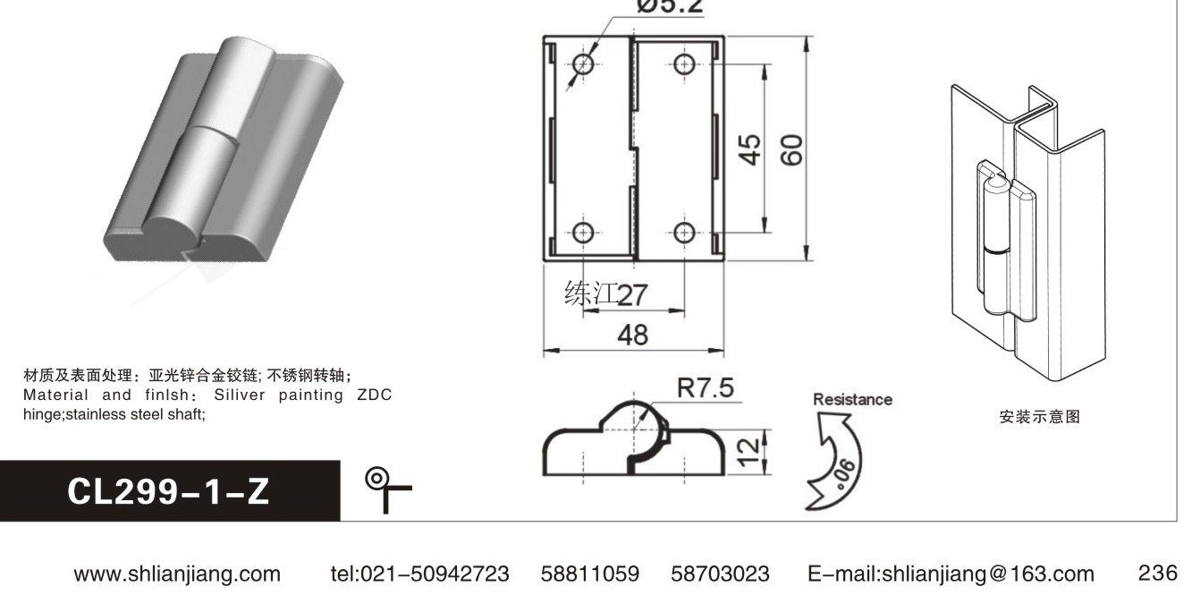 電柜鉸鏈CL299-1-Z是上海練江電器制造有限公司主營產(chǎn)品之一,公司集科研,開發(fā),生產(chǎn),銷售于一體,具有完備的各類生產(chǎn)加工設(shè)備,專注生產(chǎn)高低壓開關(guān)柜附件,產(chǎn)品已通過ISO質(zhì)量管理體系認(rèn)證.了解詳情請(qǐng)聯(lián)系021-58811059.